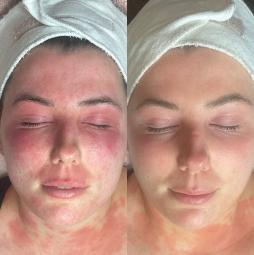 Behandlingen hjælper med at mindske rødme, styrke hudens barriere og gøre huden mere modstandsdygtig over for irritation. Resultatet er en mere rolig, balanceret og komfortabel hud. Særligt velegnet til sensitiv hud, rosacea og psoriasis.